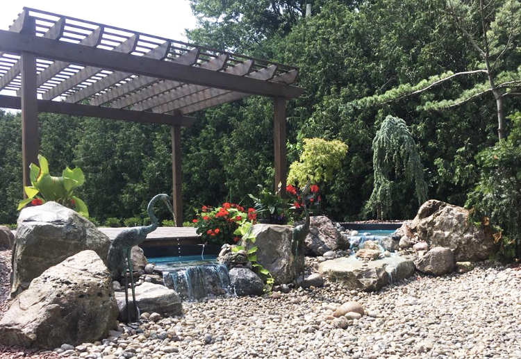 Your vision of a private oasis may include waterscapes beyond the swimming pool; we can make it happen! Ponds, waterfalls and bubbling rocks can add beauty and tranquillity to your landscape. The gentle sound of a babbling brook or a trickling waterfall has the power to absorb stress and melt your cares away. The addition of a pond, waterfall or bubbling rock formation can give you that feeling of serenity whenever you need it!